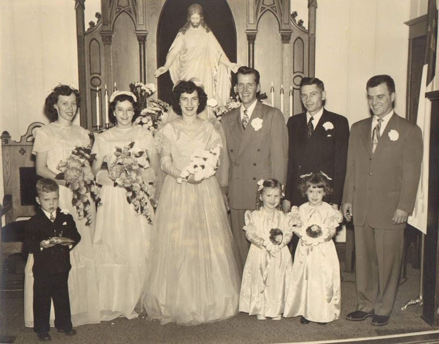 Now it kinda makes ya scratch yer head to figure that, here’s a young buck who grew up in Minnesota’s frozen north country. He must’ve learned all the proper ways to protect his body from winter’s chilling ways, right? Yet, on this magical first date with Audrey, my Uncle Erwin actually froze his feet!!! My, my!!! Was he overly captivated by her beauty and fell in a trance? Maybe he was guilty of staying out in the grinding cold to try to snatch that first kiss? Whatever the case may have been, that small town of 600 souls found Erwin’s predicament to be hilarious and he was the buzz of the chatter around that town for some time after the incident. Whatever Erwin’s cost, in frozen footsies, he won his maiden and they gathered at the north end of the little town of Lyle, Minnesota at Our Savior’s Lutheran Church to ‘tie the knot’ on December 2nd of 1950.