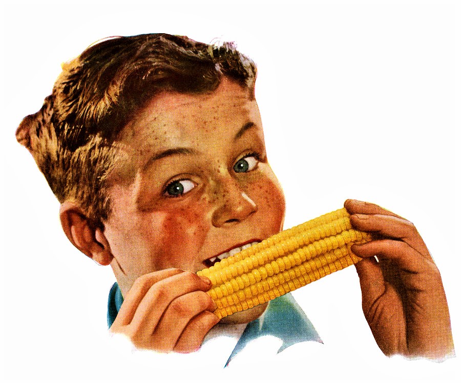 EXPLOSIONS of sweet corn ambrosia flooded my young farmerboy’s mouth as my juvenile incisors ripped mouthful after mouthful of golden delight from each corn cob. Ooozing, sweet, creamery butter, that was soaked into that sweet corn, would glide happily over my chin in a glissando of gluttony and boyhood joy. You’ve maybe heard of having a ‘square meal’? When it came to my collegiate corn crunching credentials, my end product culminated in a completely clean, square corncob devoid of kernels and residual juices. My square corncob had been literally vacuumed dry by my mouth, in latitudinal rows, till there wasn’t even a trace left of those tantalizing morsels.