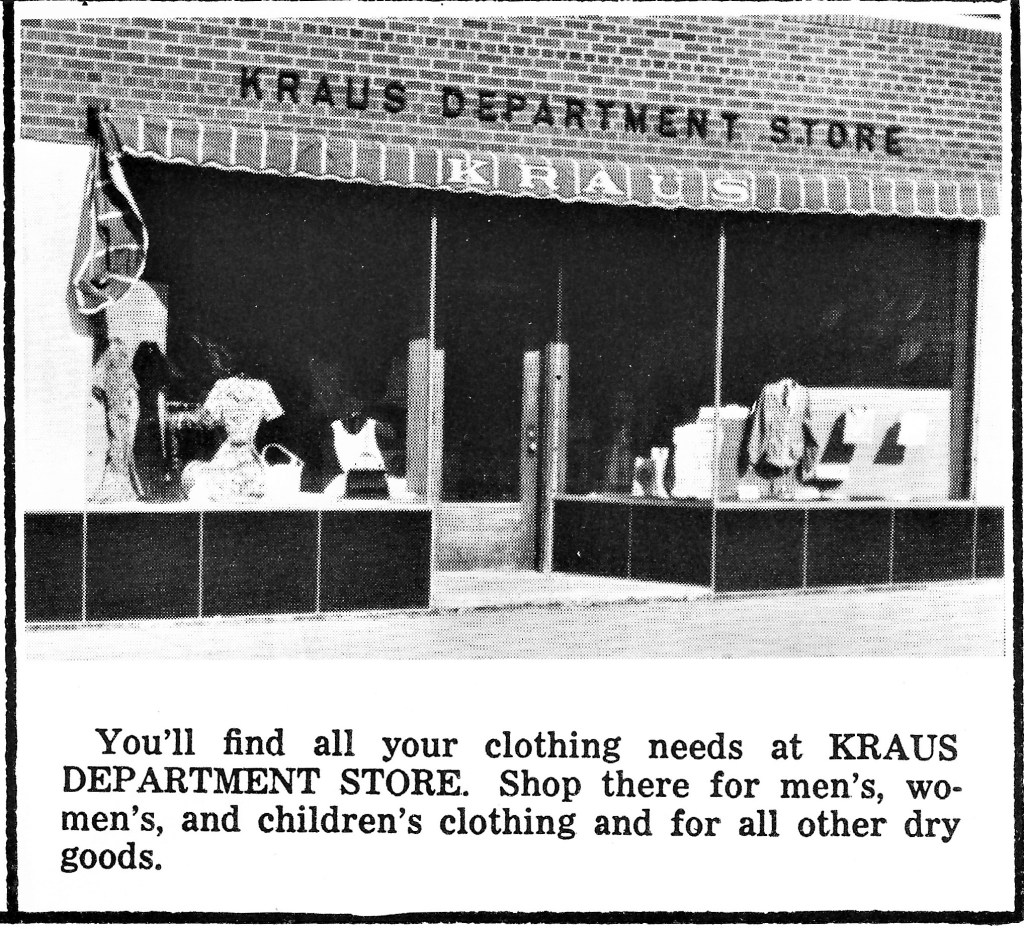 A cheery “ching-a-ling” sounded above our heads as Mom and I pushed open the glass-paneled door of Kraus Department Store. In my mini-boy mind, I could tell that that tiny brass bell, hanging from that wooden door frame, was just plain happy to see us. “Mr. Bell” had announced to the owners that we had arrived at their family-owned establishment. Like all good farm families, we patronized this fine, hometown store for our family clothing needs. Since 1952, this brick edifice of commerce sat elegantly on the north end of Main Street there in our beloved hometown of Kiester, Minnesota. As was typical of countless other Main Street storefronts of American culture, in that era, this department store had massive ‘picture windows’ that brightly displayed various fashion wares and accessories to folk passing by on the sidewalks of our lovely village. Long before giant malls, our town’s sidewalks were the boulevards upon which these owners hoped their displayed wares would catch the eye of local farm families who came into town on a regular basis to provide the clothing and shoe necessities for moms and dads and children, too.