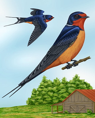 A rich, cobalt-blue reflected off the glistening crowns, backs and wings of Barn Swallows. Their handsome, feathered frock of colors were ignited by a golden Minnesota morning sunlight that refracted through the barn windows of the Noorlun farm near Fosston, Minnesota. The deep fork in the tail of these cheery chirpers resembled the ancient harp-like instrument called a lyre. These little beauties of the bird world gave a happy greeting to our grandfather, from their mudded, cup-shaped nests in the rafters of our paternal patriarch’s barn. I can envision a quiet smile of acknowledgement on his face as Edwin glanced up while stepping across the large wooden threshold to begin his day of harvesting their grain field.