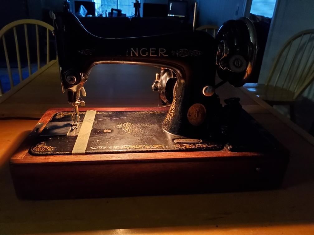 There, in the pleasant parlor of our farm home that day, I watched in fascination as our beloved mother deftly handled fabric as she fed it across the “throat plate” and then under the “presser foot” of the “Singer”. The almost imperceptible vertical flashings of the needle were a blur as she, in this case, did some sewing on a part of her recent quilt she was working on. What I thought to be pure magic, was how she made her electric sewing machine come ‘alive’ by not one, but three different methods. There was the “knee lever” that could actuate sewing by pushing her knee gently to the side; the farther she’d push the lever, the faster the “Singer” would perform. Then there was her choice of using the “graduated gear foot switch” to make her “Singer” work slowly or fast, depending on the downward pressure of Mom’s foot. And then, last, but not least, was the “Singer” “balance wheel” on the right end of the machine. Mother could, when needing utmost accuracy, take hold of the “balance wheel” and gently turn the wheel to move the needle carefully and slowly through the fabric of her latest project.