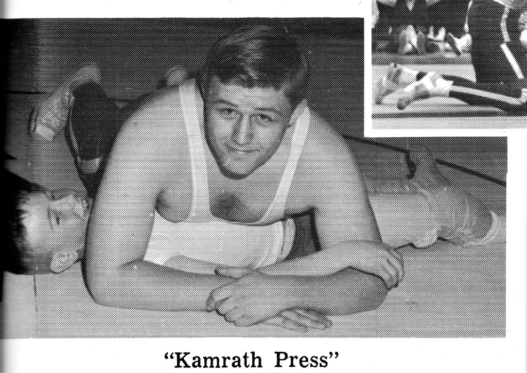 Elliott is a Wrestling Team member in this happy mangle of bodies from the 1966-67 School Year at Kiester High School in Kiester, MInnesota. Not for sure, but he MIGHT be the light-haired wrestler in lower left. 😉