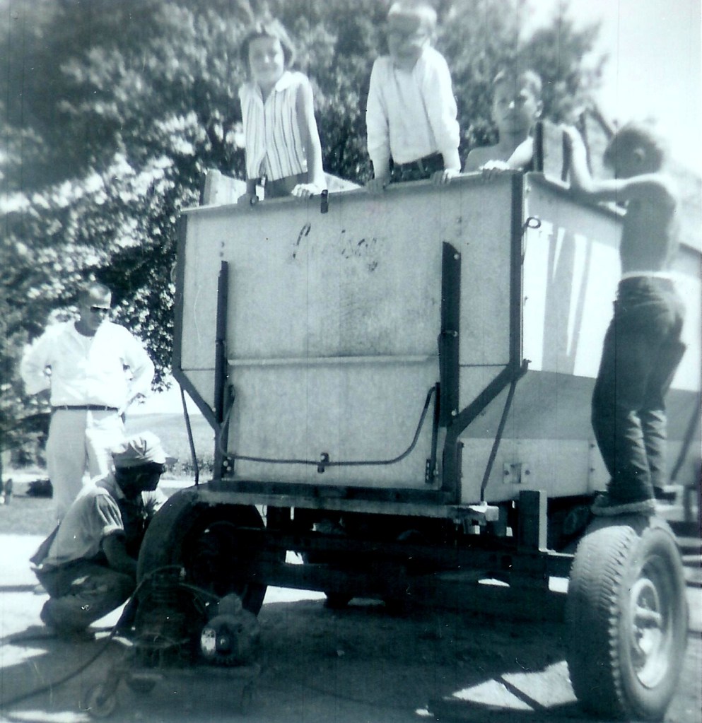 Dad’s tall, handsome brother, Erwin, and family had just rolled into our farm yard from Colorado. I was giddy with our visiting playmates along with little sister, Candice. We were consumed in jubilant playtime as we climbed up, and over, and into and out of that grain wagon.
