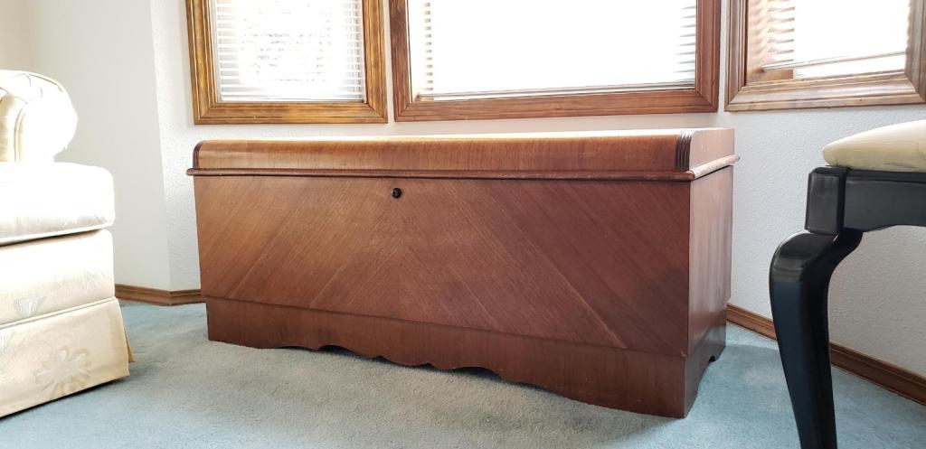 The lovely cedar Hope Chest of Elliott’s mother, Clarice, is now lovingly cared for by his sister, Candice.