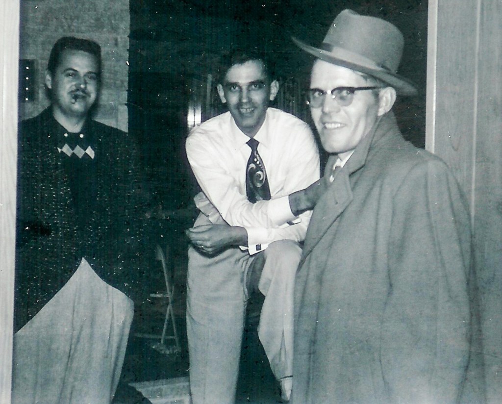 Circa 1957 and Elliott stands next to his handsome father, Russell.