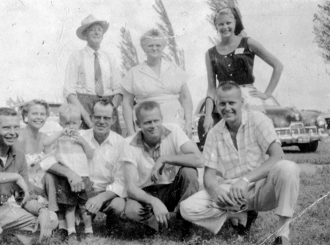 Uncle Erwin is to the far right and in front of his mother, Marie. Photo is circa early to mid 1930’s. Elliott’s father, Russ, is center in white shirt.