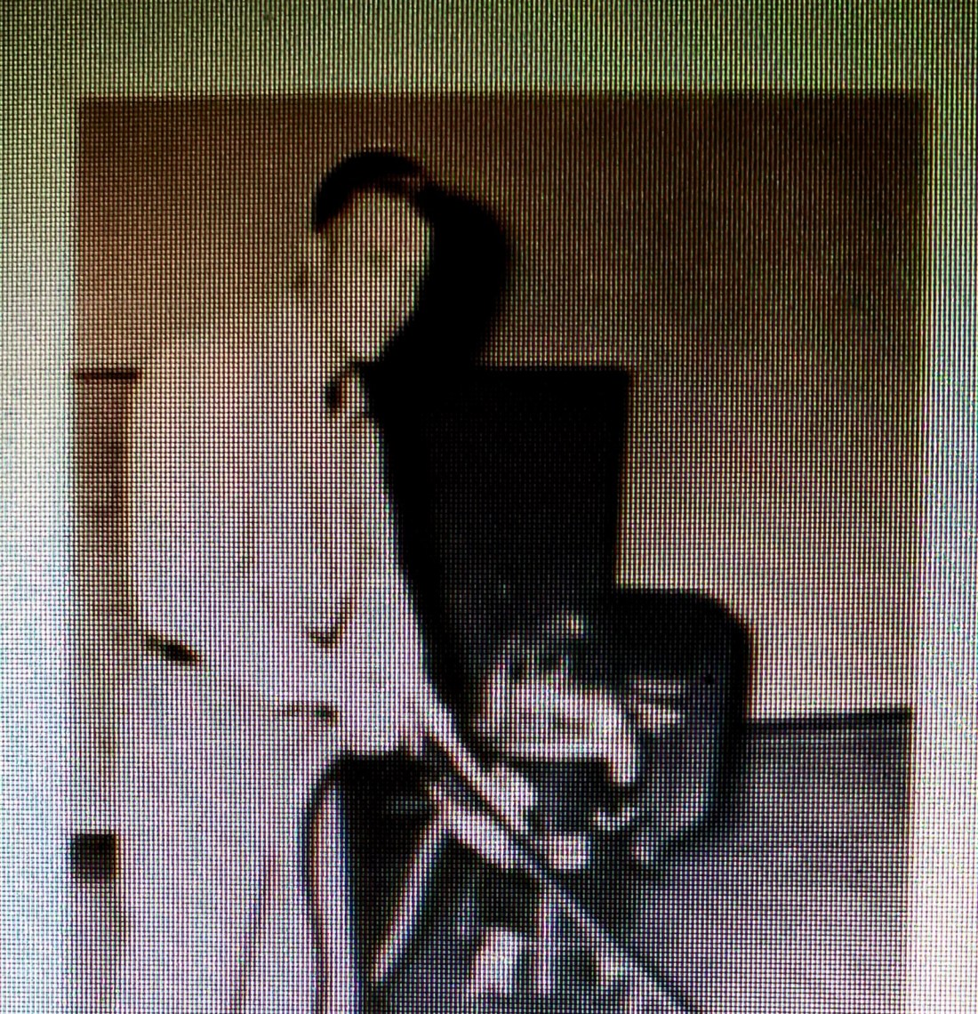 This is a photo of Elliott’s grain chute that brought oats down from the upper room of the Granary and into buckets for feeding the farm animals.