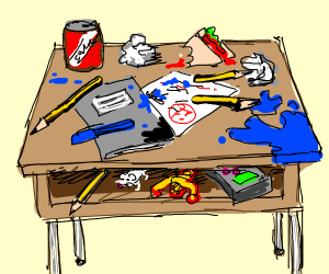 POEM – “Glee For Me”. Created by N. Elliott Noorlun. Not only did I love my 2nd Grade Teacher, Mrs. Baker, but I also loved being a Slobbery Slovenly Sam back in those school day years when it came to the textbook and paper mess under the lid of my classic old lift-top student desk.