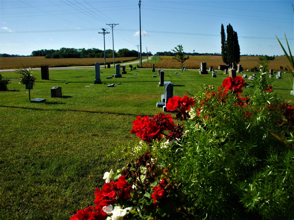 Orville Thorson, our village ‘Peacemaker’, was on patrol and coasting down the ‘Kiester Hills’ on Highway 22 as he passed “Fairview Cemetery” on his way back into town. Between he and the early evening sunset, numerous headstones of our town’s pioneer heritage stood in somber silhouette against that golden glow to mark the resting place of some of the fine citizens that had made their life among the fecund farmland that surrounded their current repose. Truly it was a ‘fairview’ for families to have placed their loved ones here as prairie winds animated the leaves of surrounding cornfields that sang a rasping song of tribute to these dear loved ones of the past.